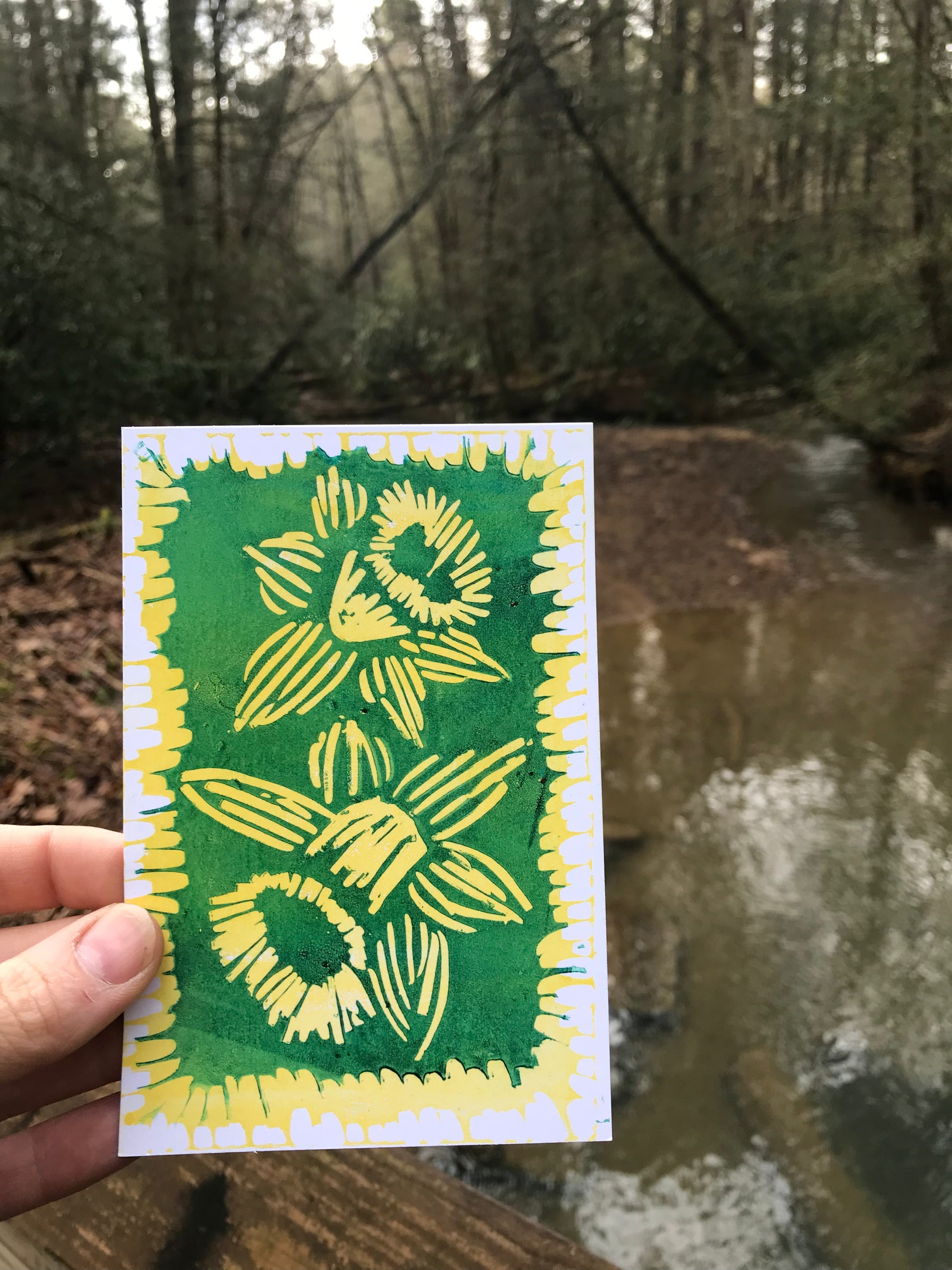 Hand printed Awaiting Spring 4”x6”